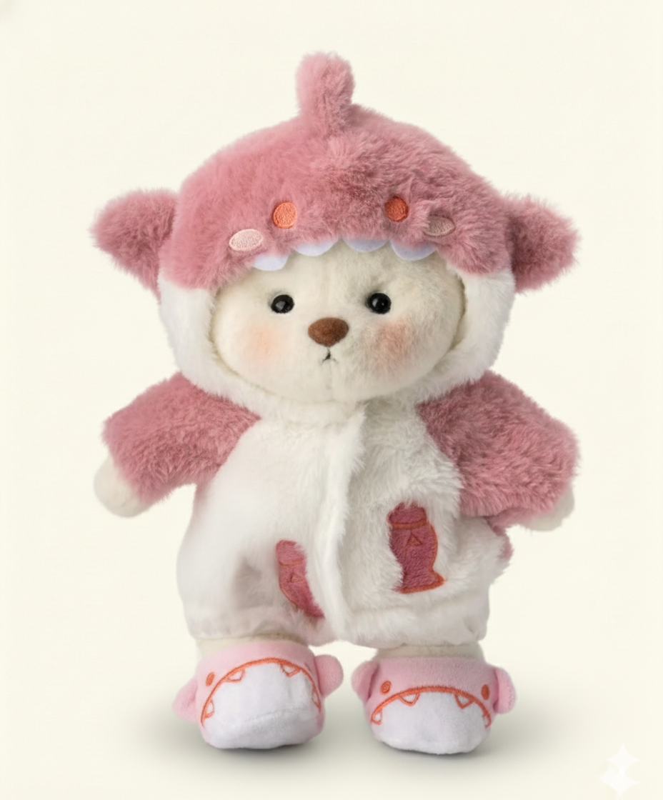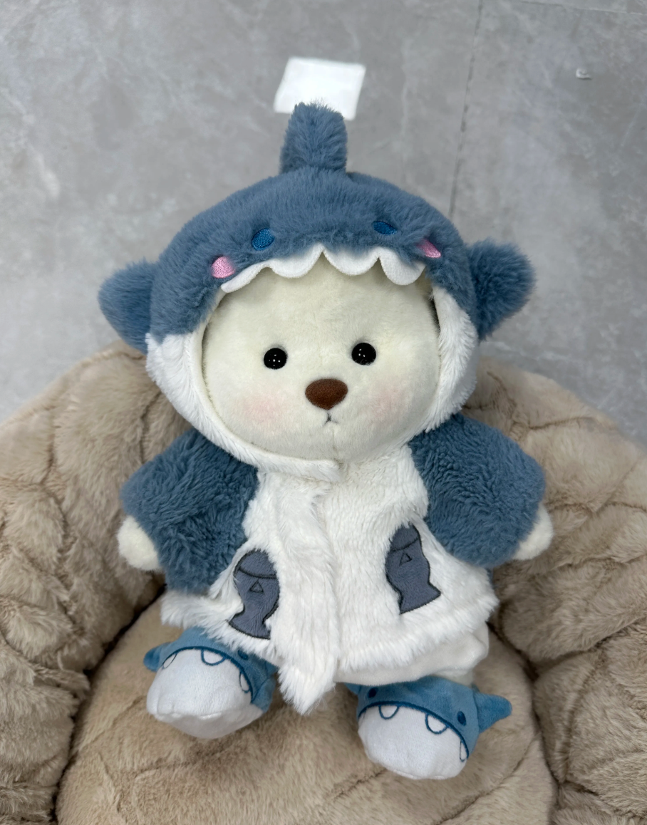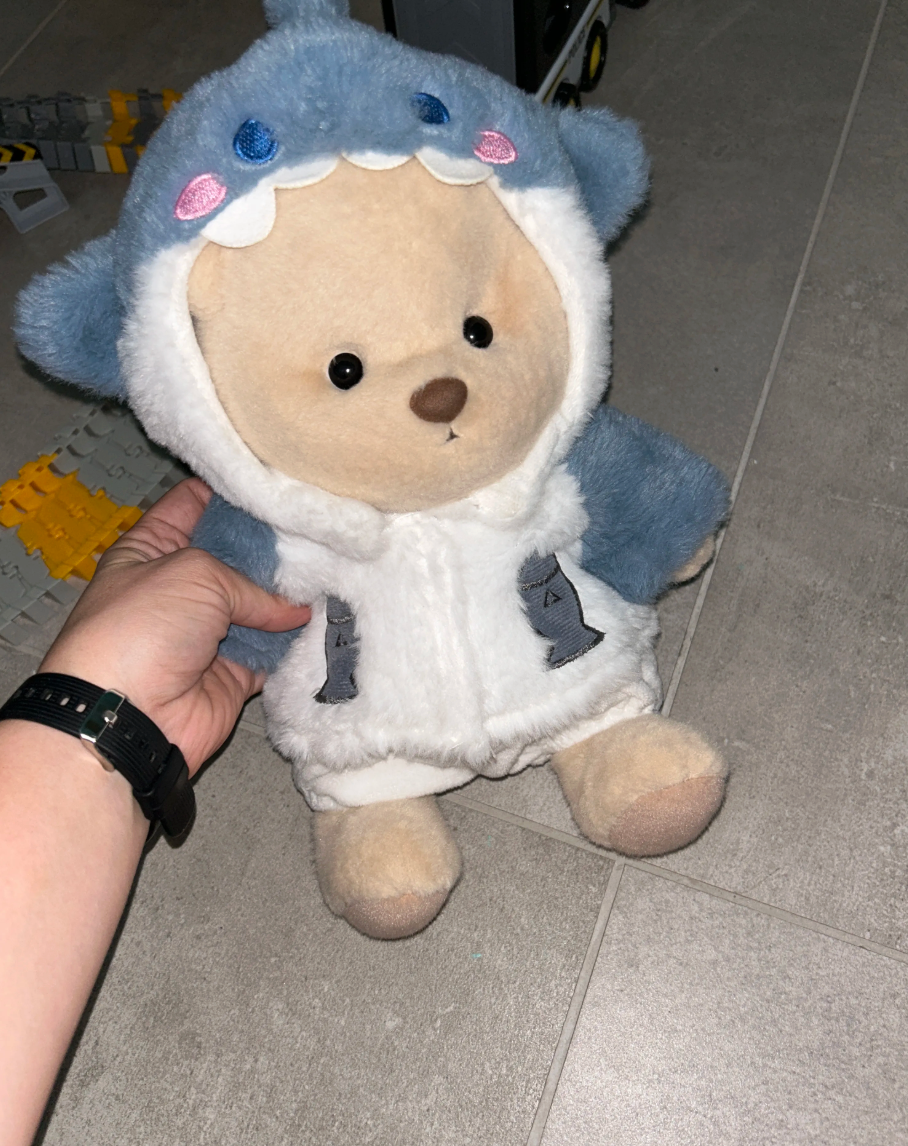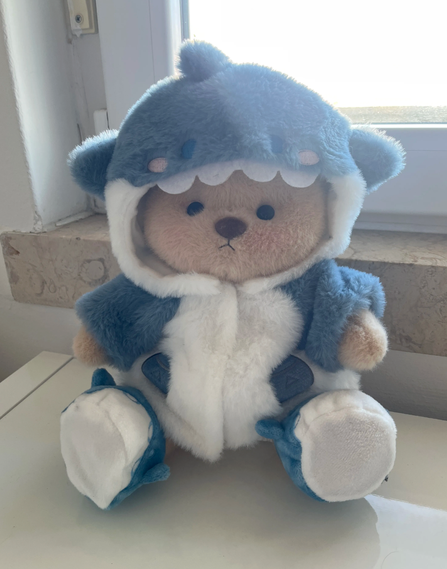 Love this little bear! The joints move smoothly and it’s so much fun to pose. The shark outfit just makes it even better — so clever and cute.