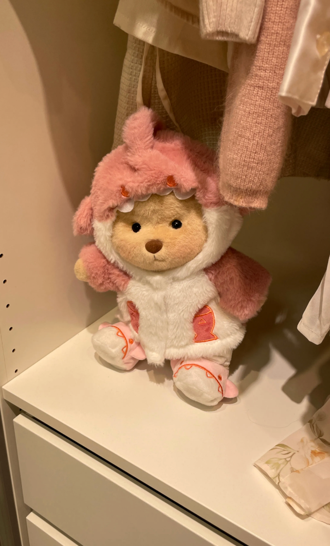 So impressed! The outfit fits perfectly and the bear’s expression is just so sweet. It feels like a collectible, not just a plush.